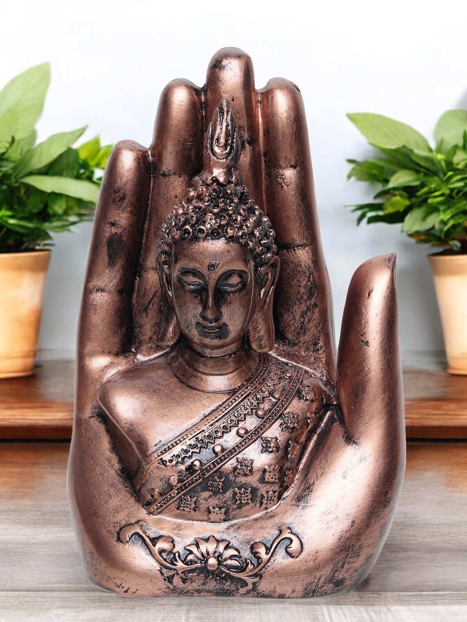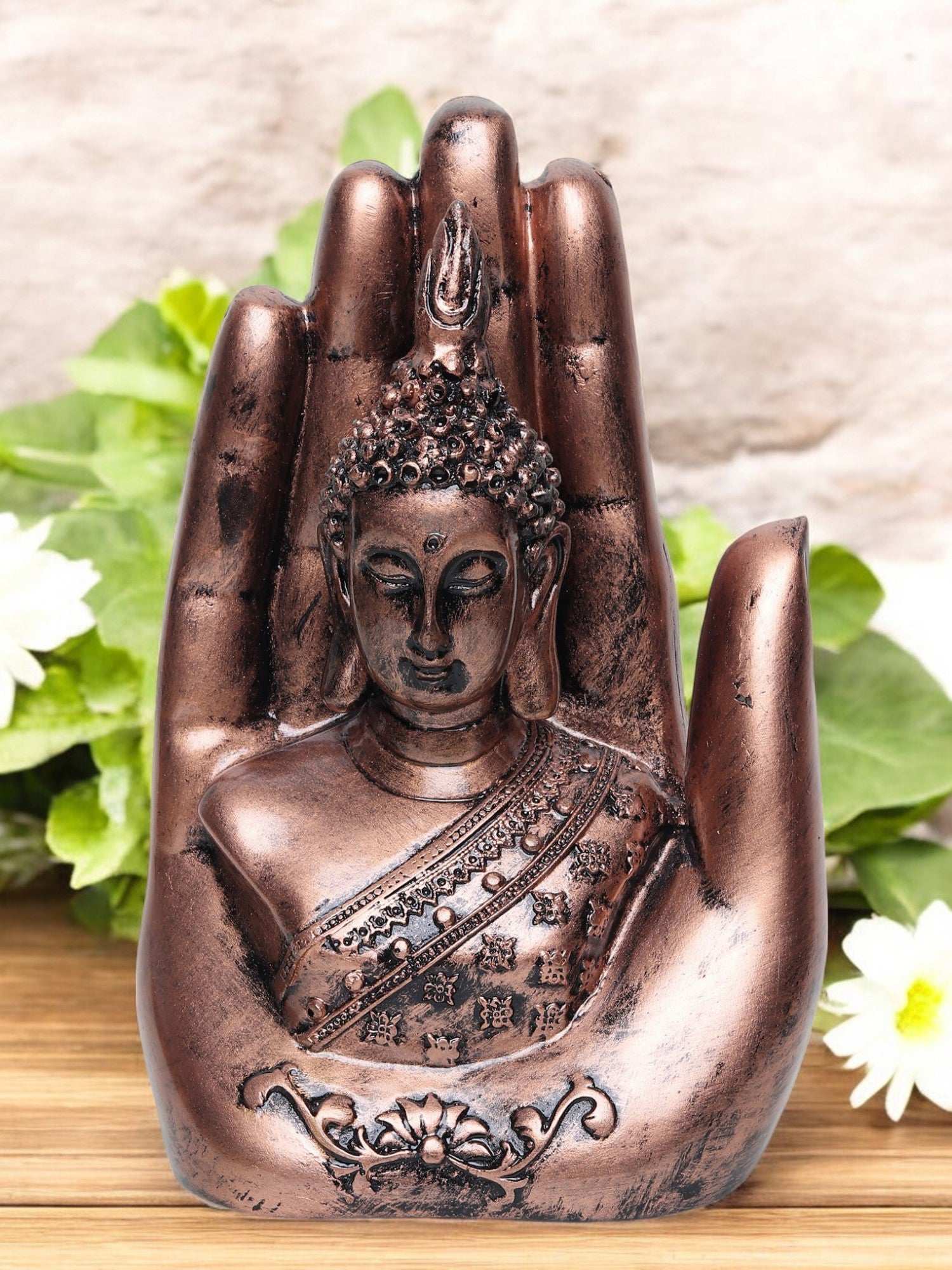 Introducing the exquisite Buddha Palm Statue Handmade (Antique Copper) by Vivars Home. This beautiful figurine showcases intricate handcrafted details in a stunning antique copper finish. The Buddha Palm Statue is a symbol of peace, harmony, and enlightenment, making it a perfect addition to any home or meditation space. Crafted with high-quality materials, this statue is durable and long-lasting. Embrace tranquility and decorate your space with this unique piece that radiates calming energy. Elevate your decor with the Buddha Palm Statue Handmade (Antique Copper) and create a serene atmosphere in your surroundings.