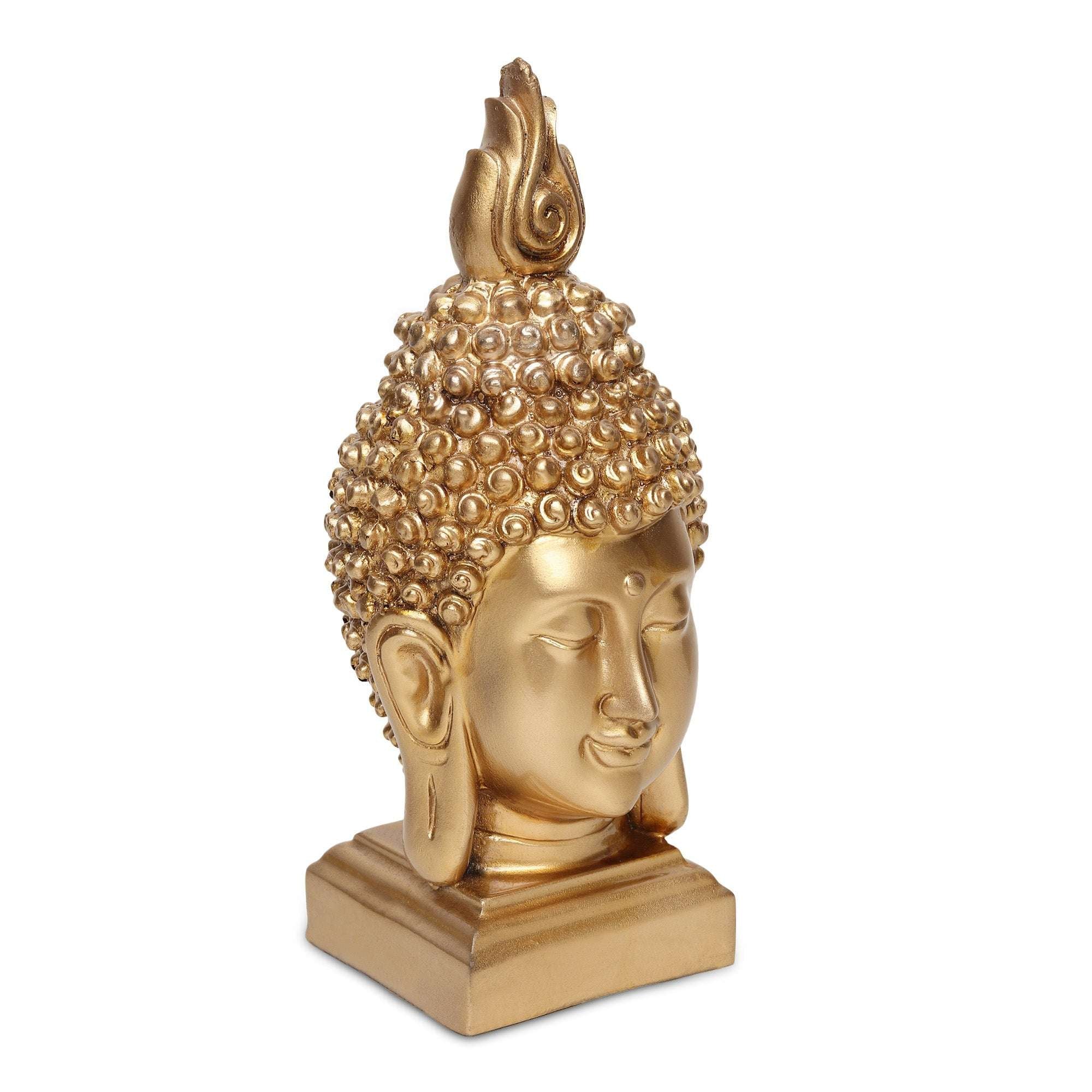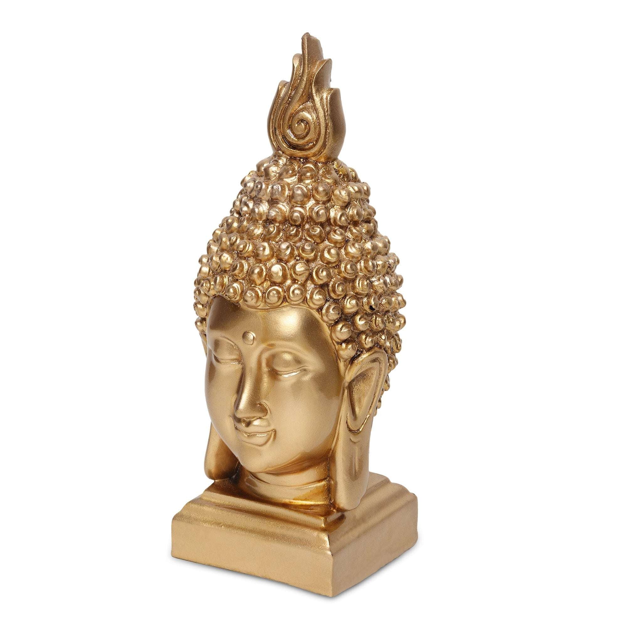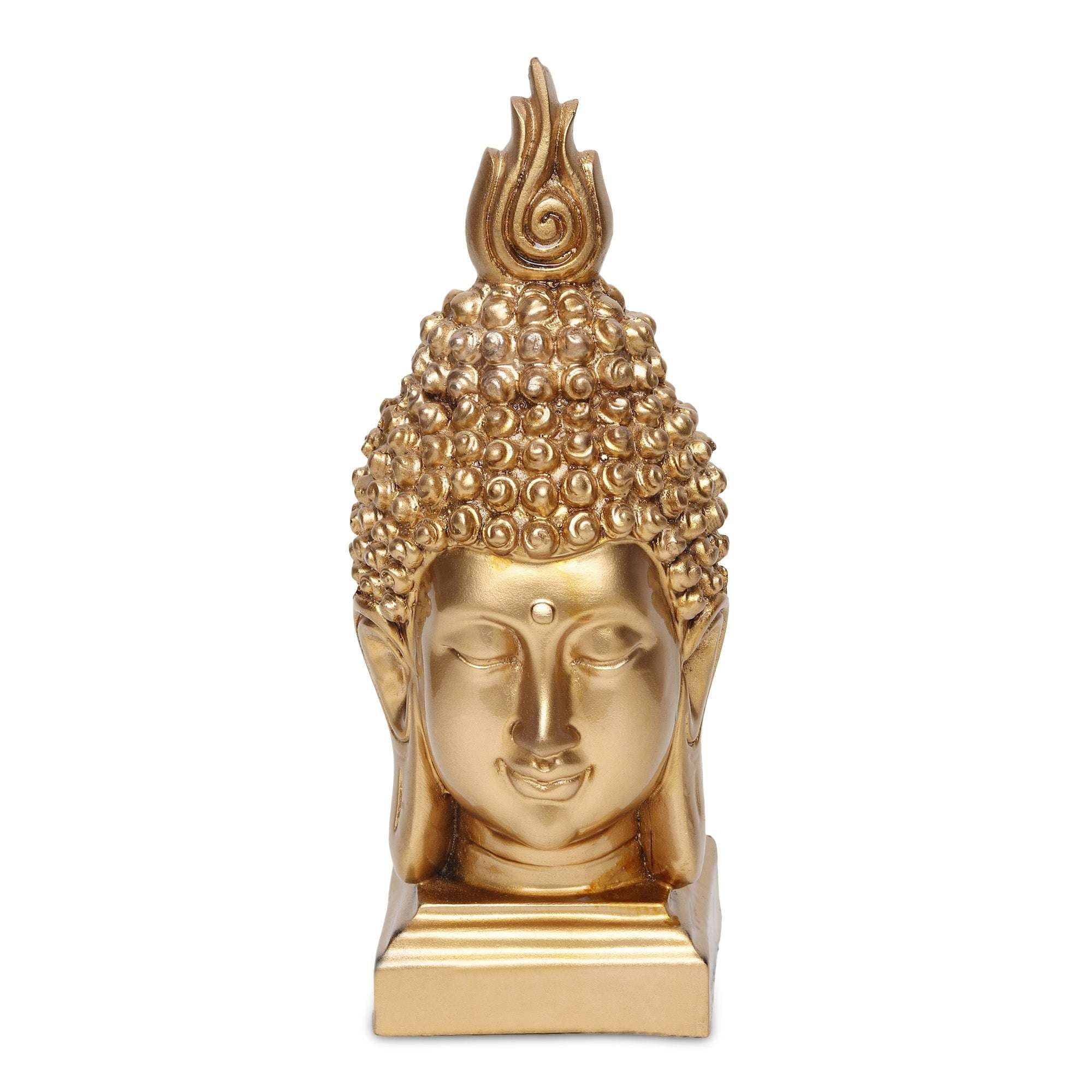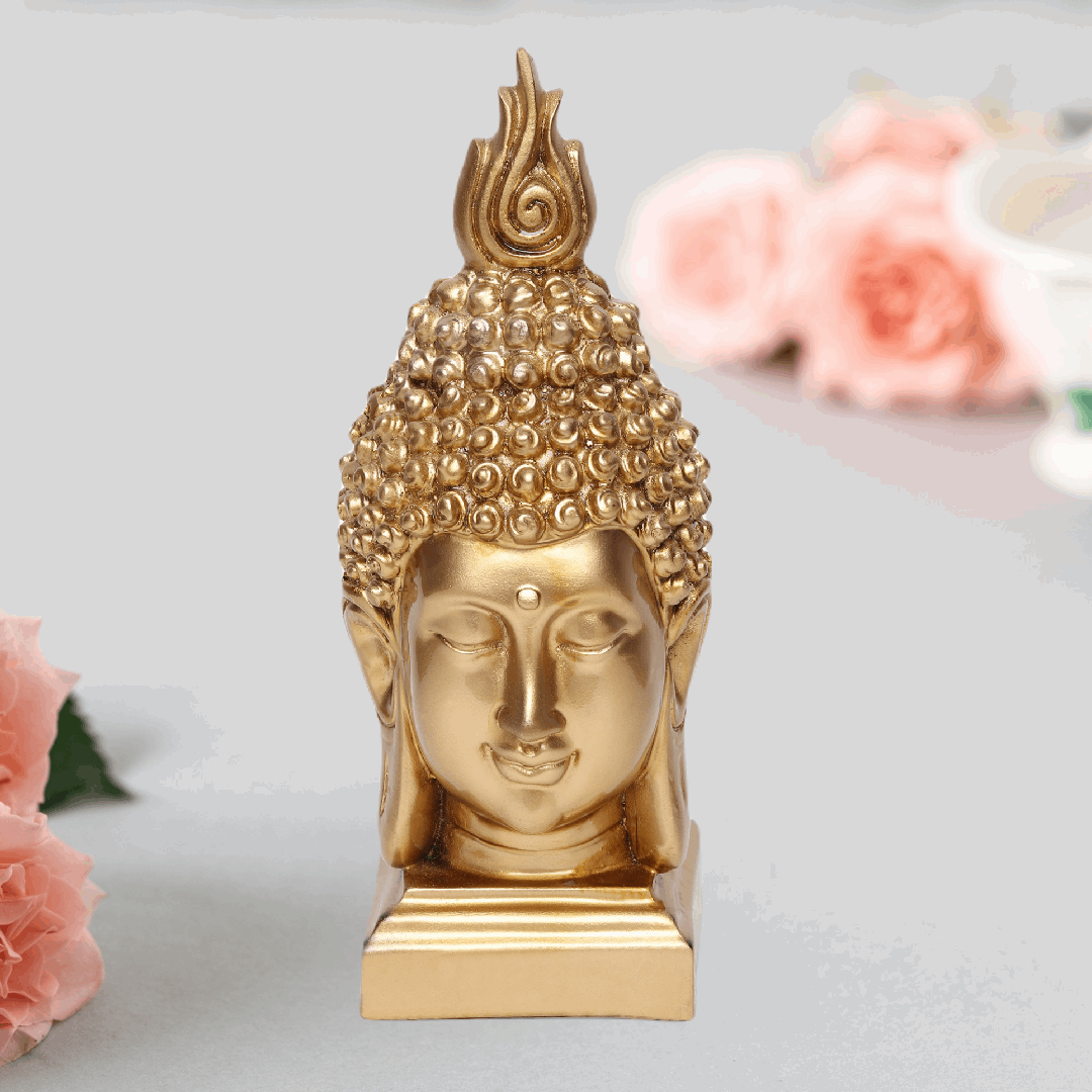 Introducing the exquisite Lord Buddha Head Statue Showpiece in Gold by Vivars Home! This stunning figurine is intricately crafted with attention to detail, showcasing the serene expression of Lord Buddha. Made from high-quality materials and finished in a luxurious gold color, this showpiece exudes elegance and tranquility. Perfect for adding a touch of spirituality and beauty to any home or office space. The unique selling point of this product lies in its exquisite design and premium quality. Elevate your decor with this eye-catching Lord Buddha Head Statue Showpiece - Gold.
