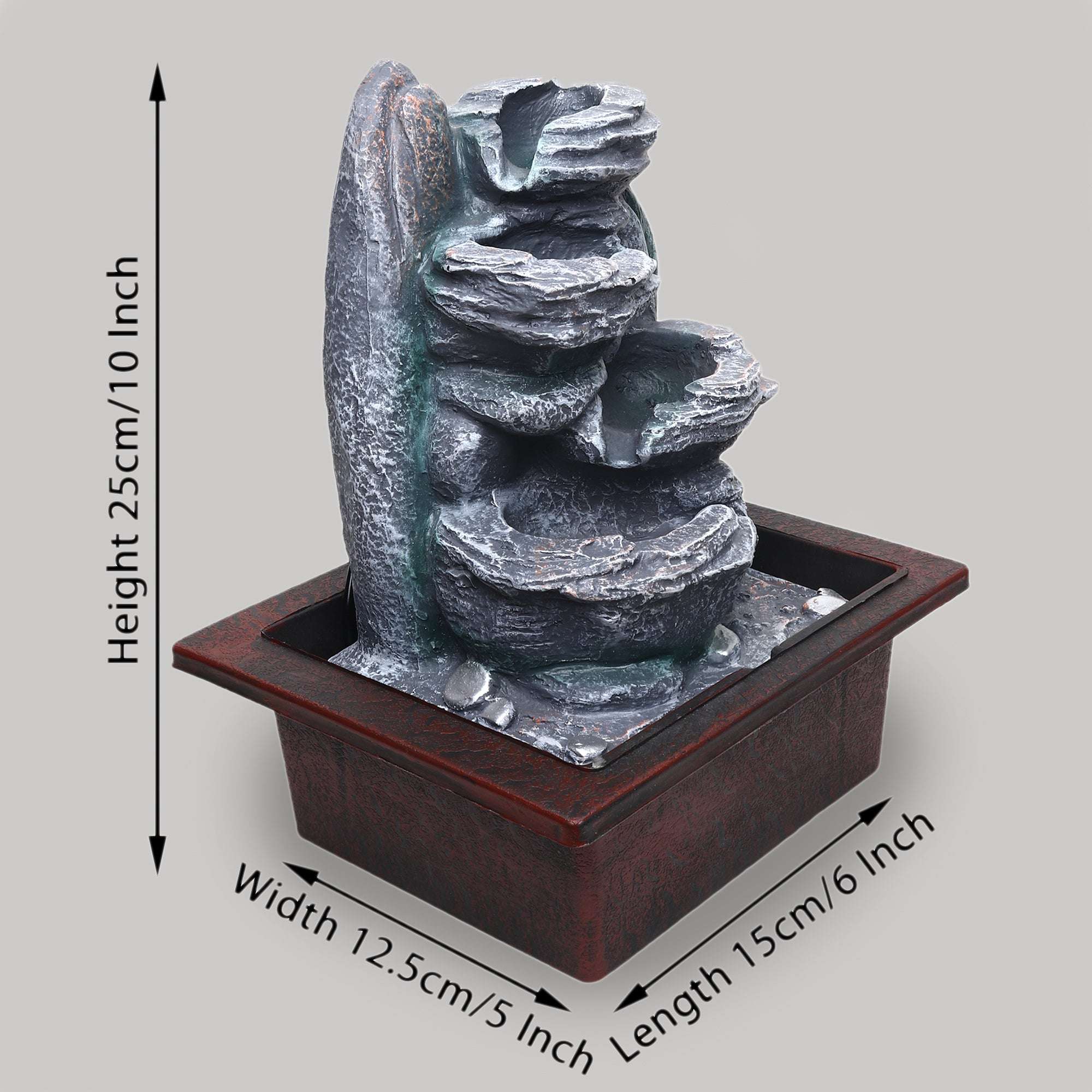Fill your home with peace and tranquil with spiritual, adorable and beautiful water fountain. The falling water indoor/outdoor fountain brings the relaxing presence of running water to your home or garden without the difficulty of plumbing. a pump pulls water back to the top so each droplet can limitlessly journey through the fountain. This beautiful fountain makes an affordable, inexpensive gift for any occasion, such as birthdays, retirement, housewarming celebrations, engagement parties, and anniversary gifts for parents, relatives, and friends and employee gift exchanges. It's a sensual practice for personal relaxation by listening to the soothing word of flowing water. It will enhance any kitchen counter, table, fireplace, coffee table, dinner table, patio table, front desk, nightstand, or top shelf. Intended for indoor use and outdoor usage is possible. This tabletop fountain is constructed out of polyston and is lightweight and easy to move for longevity, drain, cover/store fountain when not in use. Check and tighten all electrical connectors at set up