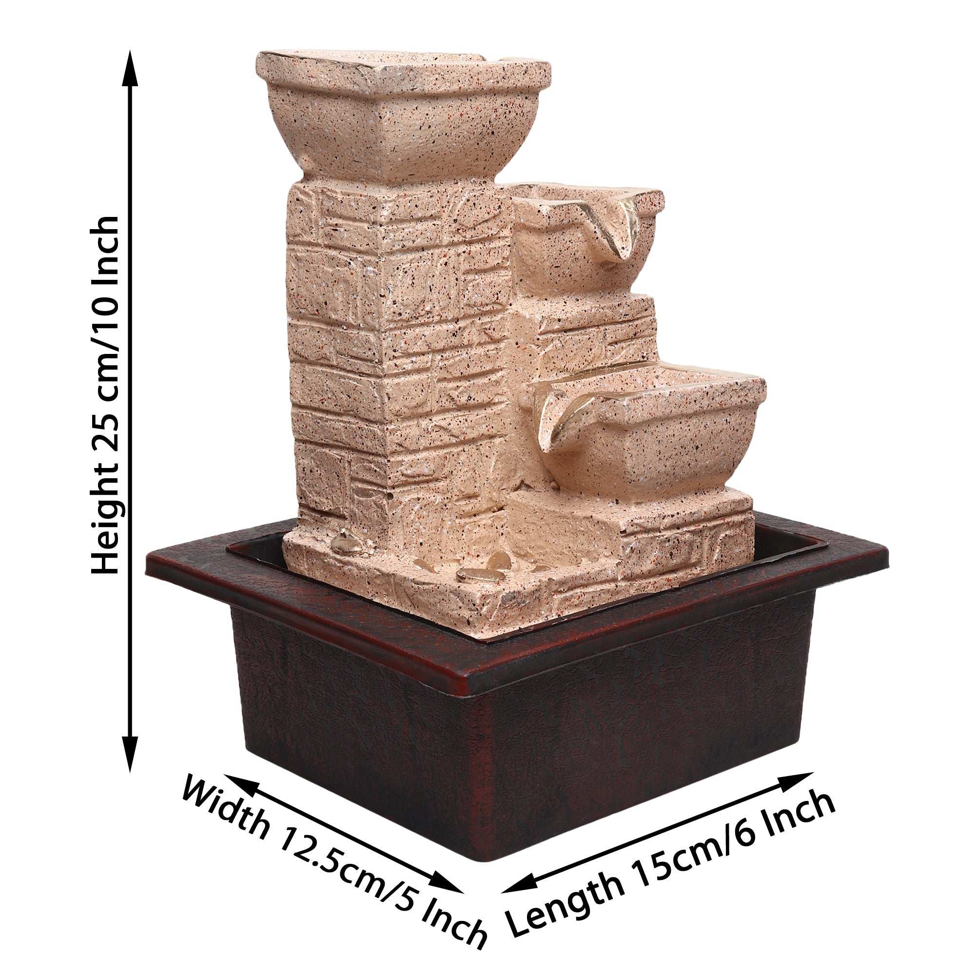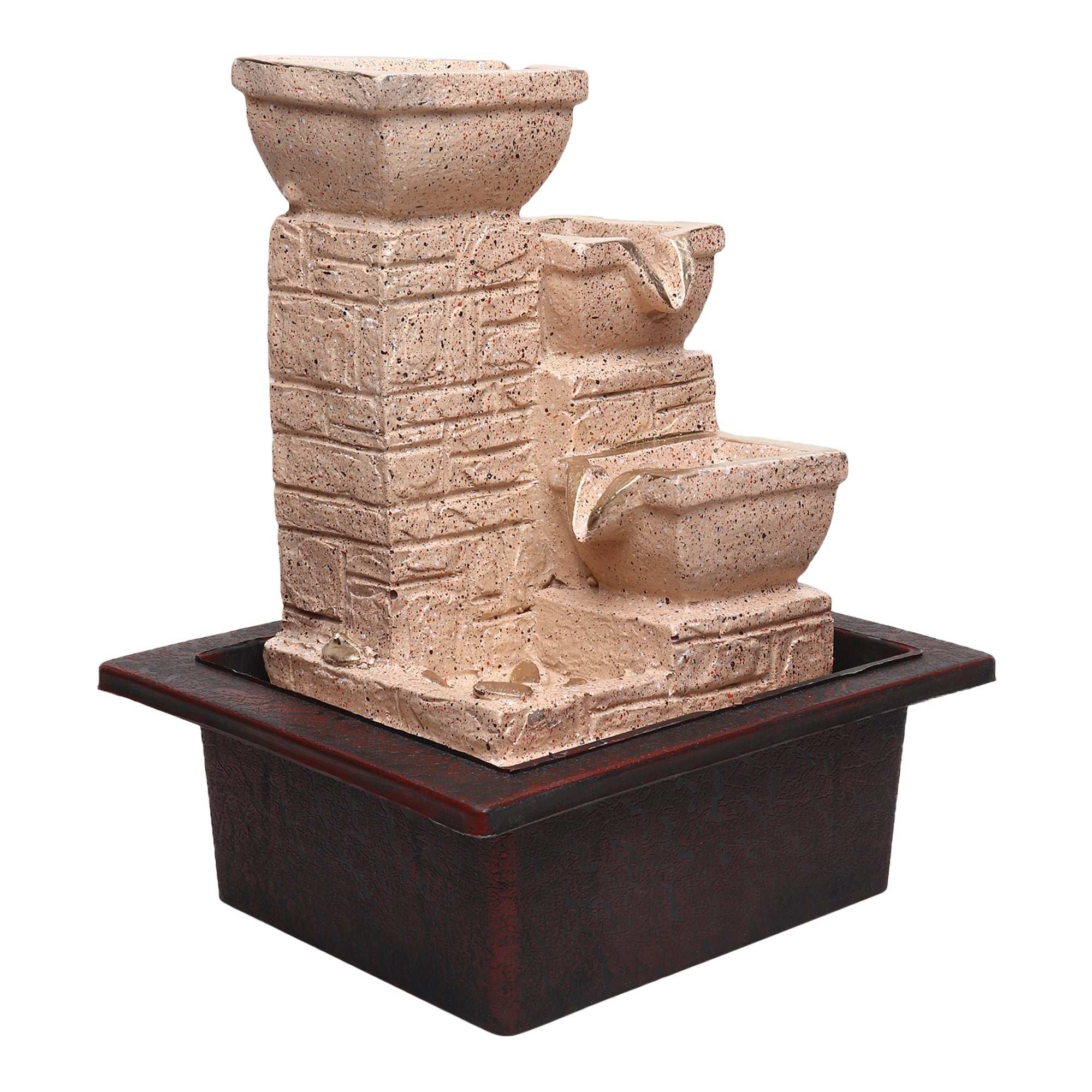 Fill your home with peace and tranquil with spiritual, adorable and beautiful water fountain. The falling water indoor/outdoor fountain brings the relaxing presence of running water to your home or garden without the difficulty of plumbing. a pump pulls water back to the top so each droplet can limitlessly journey through the fountain. This beautiful fountain makes an affordable, inexpensive gift for any occasion, such as birthdays, retirement, housewarming celebrations, engagement parties, and anniversary gifts for parents, relatives, and friends and employee gift exchanges. It's a sensual practice for personal relaxation by listening to the soothing word of flowing water. It will enhance any kitchen counter, table, fireplace, coffee table, dinner table, patio table, front desk, nightstand, or top shelf. Intended for indoor use and outdoor usage is possible. This tabletop fountain is constructed out of polyston and is lightweight and easy to move for longevity, drain, cover/store fountain when not in use. Check and tighten all electrical connectors at set up