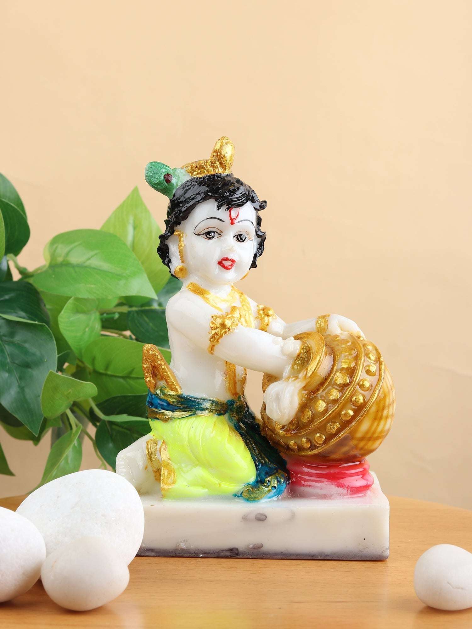 Marble Lord Krishna Ji (Bal Gopal Makhanchor) Idol - Green