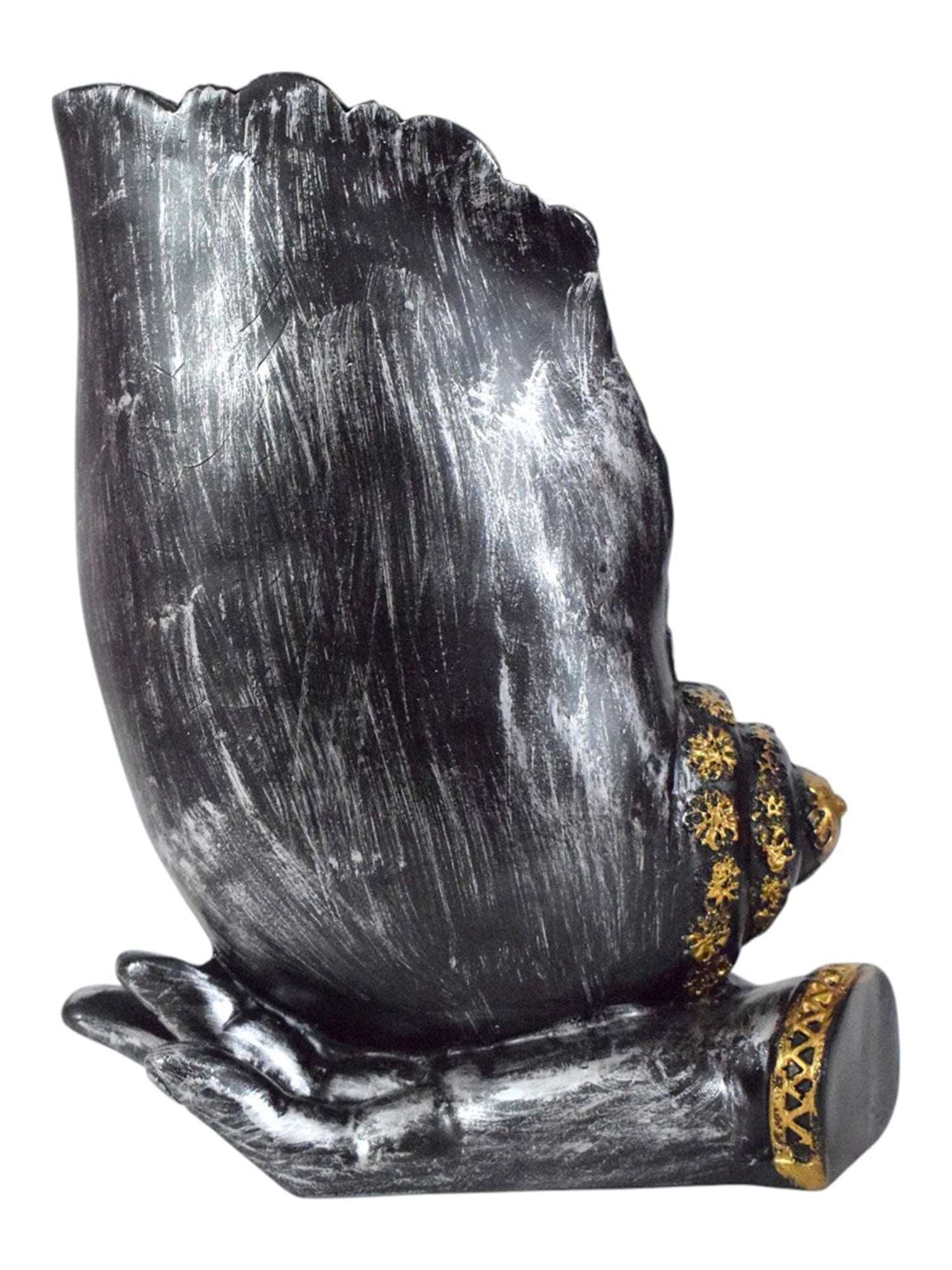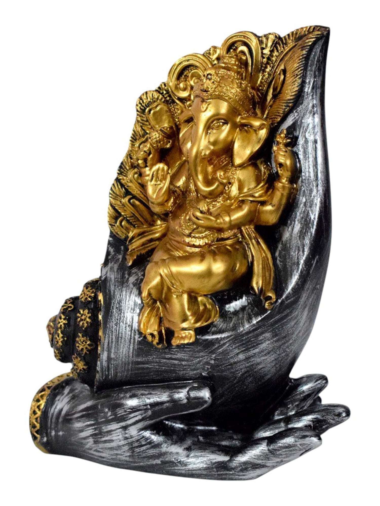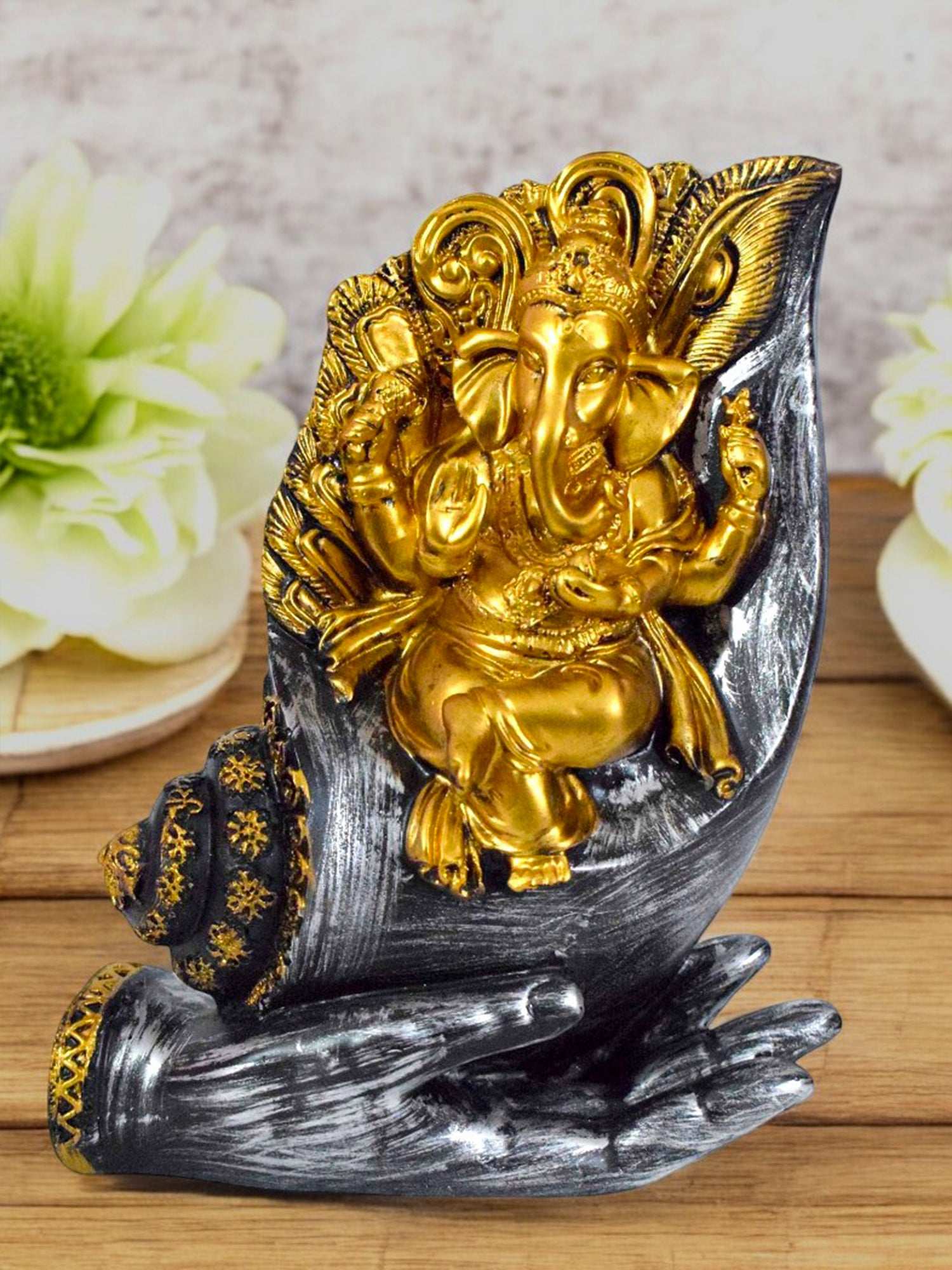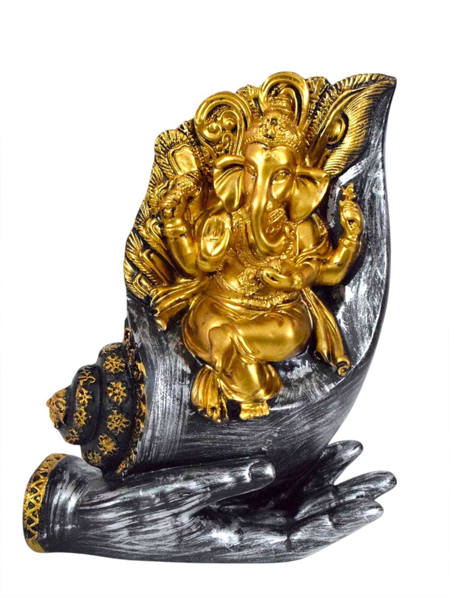 Introducing the 'Blessing Lord Ganesha on Shankh Palm Decorative Showpiece' by Vivars Home. This exquisite figurine features Lord Ganesha beautifully crafted sitting on a Shankh Palm, making it a unique addition to your home decor. Made with high-quality materials, this showpiece is intricately designed to bring blessings and positivity into your space. Perfect for gifting or personal use, this decorative showpiece is sure to enhance the ambiance of any room. Elevate your decor with the Blessing Lord Ganesha on Shankh Palm Decorative Showpiece by Vivars Home.