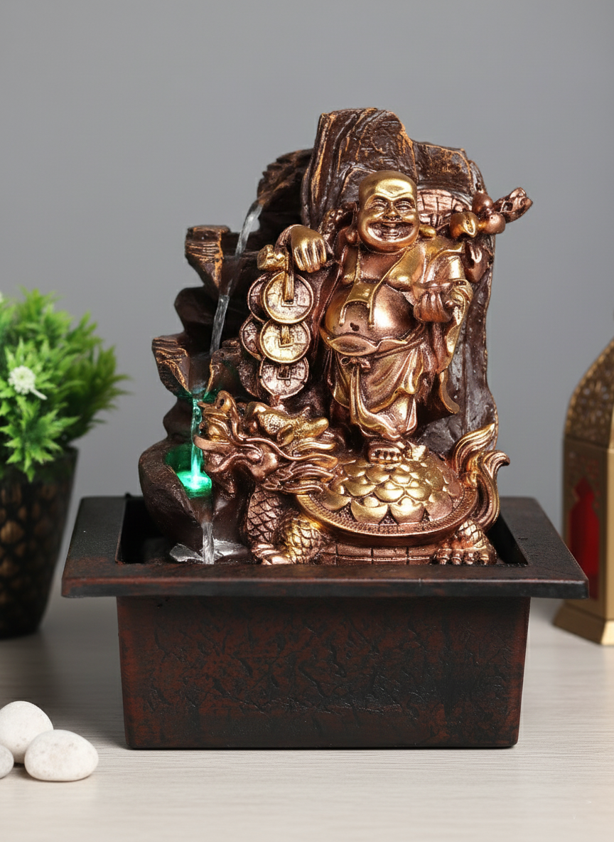 Transform your home into a sanctuary of peace and tranquility with our Laughing Buddha Water Fountain with LED Light. This exquisite piece not only elevates the aesthetic of any space but also invites calm and relaxation. The gentle sound of cascading water creates a soothing ambiance, while the serene smile of the Laughing Buddha brings an aura of happiness and prosperity. Perfectly designed to uplift your living room, bedroom, or meditation area, this water fountain is more than just decor—it's a pathway to a more serene life.