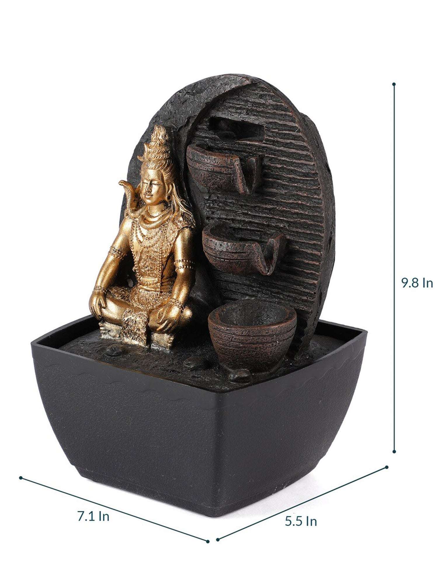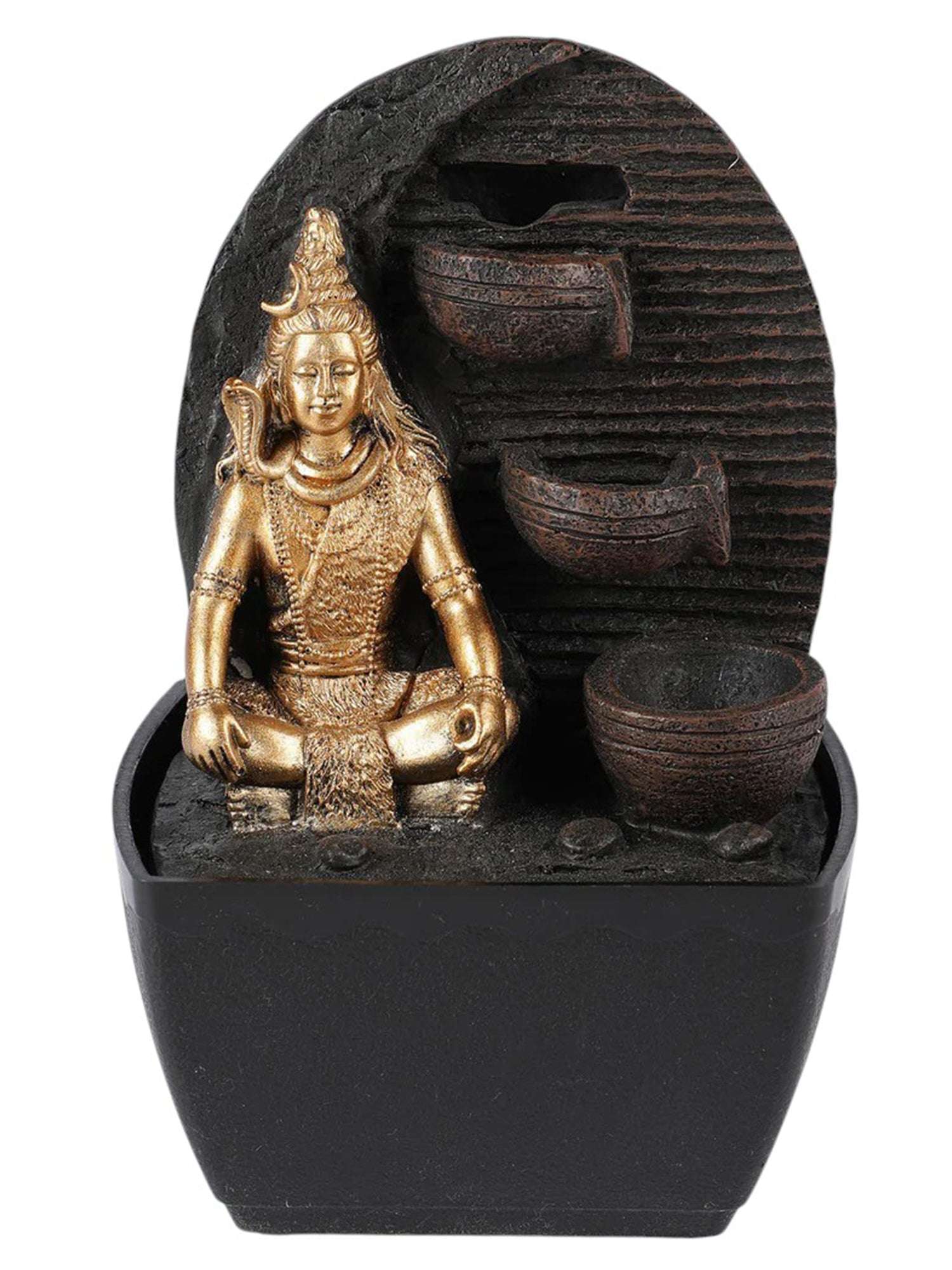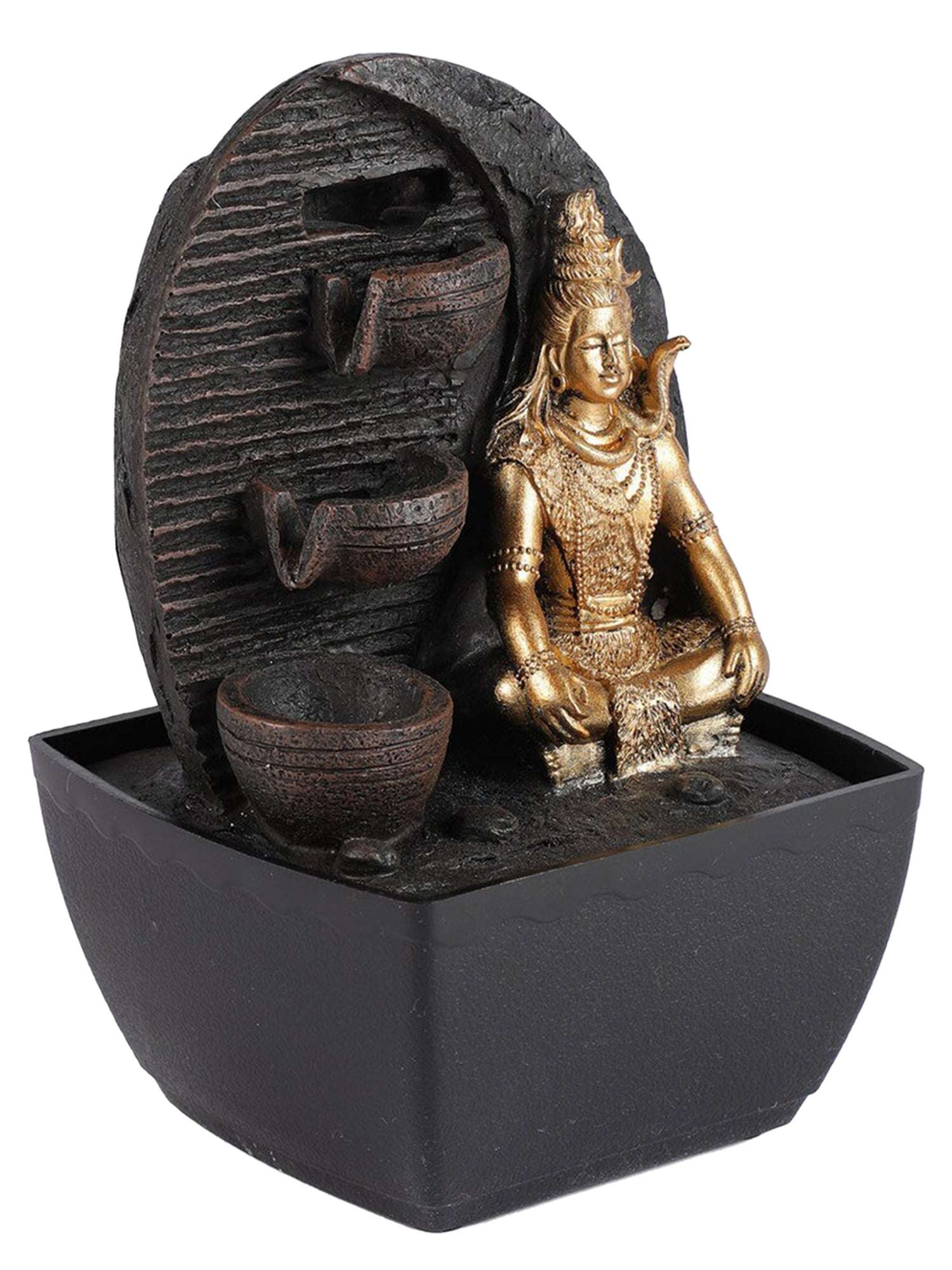 Enhance the ambiance and bring a sense of serenity to your home or workplace with the Polyresin Lord Shiva Water Fountain. Made with high-quality polyresin, this fountain is a durable and beautiful addition to any space. Illuminated by a built-in LED light, the elegant Lord Shiva statue radiates a soothing glow and creates a peaceful atmosphere. Its compact and portable design allows for effortless placement in your living room, bedroom, office, or meditation room. Let the gentle sound of running water calm your mind and enhance your surroundings with this exquisite water fountain.