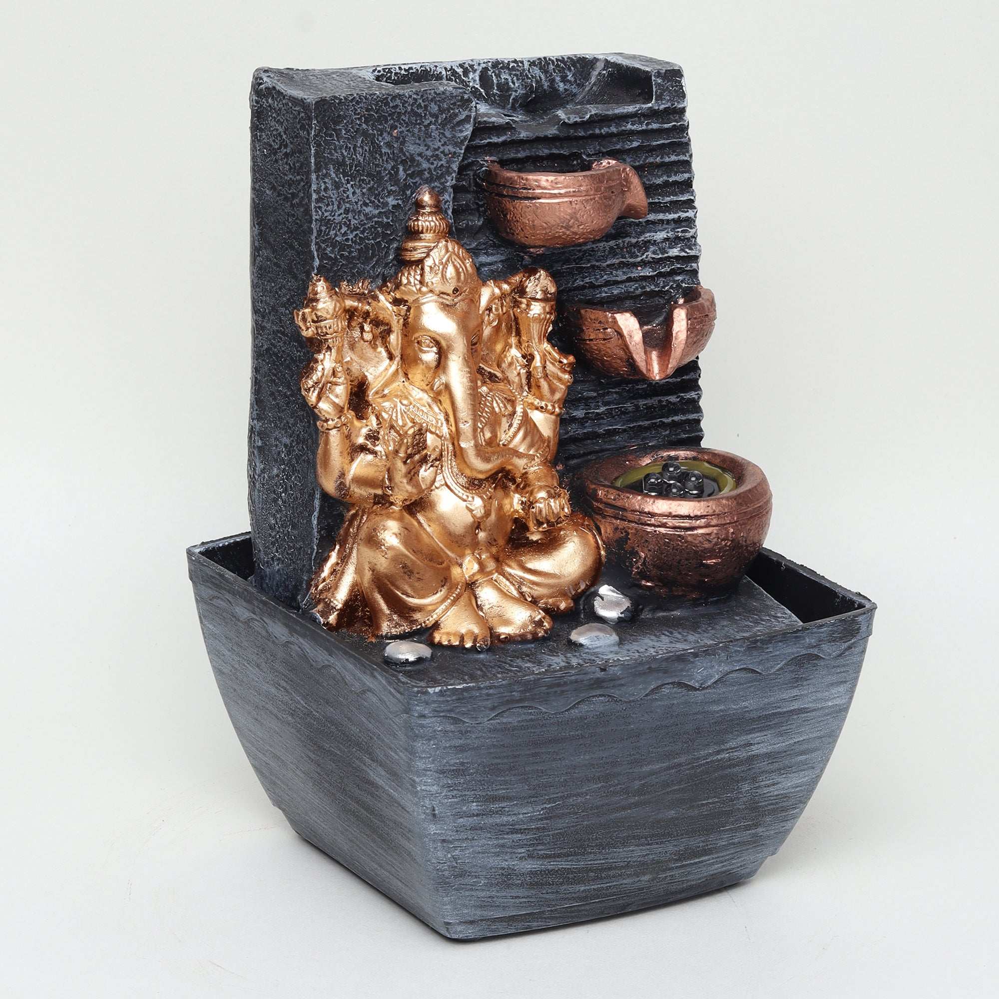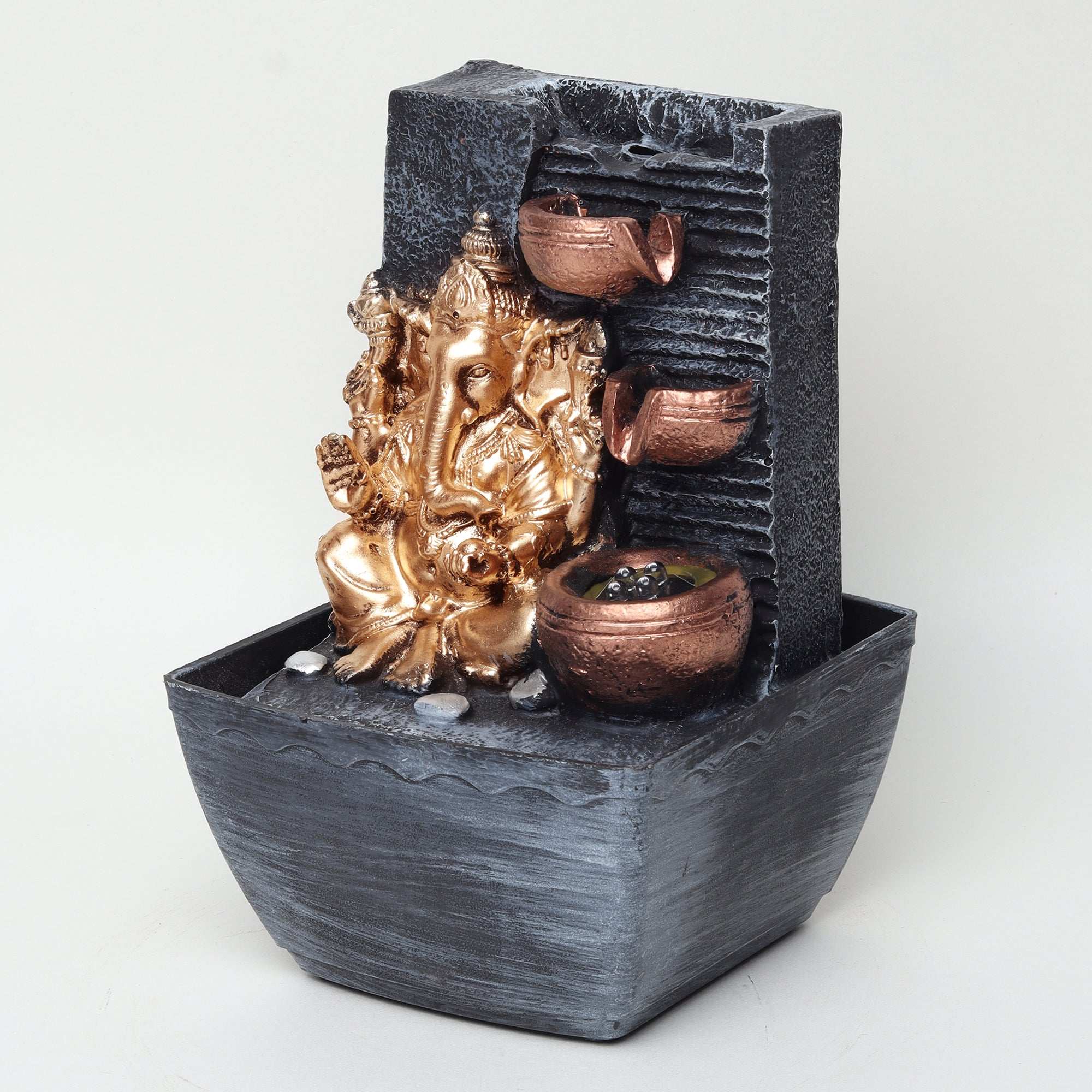 Experience peace and tranquility in your home with this beautiful water fountain. Designed for both indoor and outdoor use, it brings the soothing sound and presence of running water without any difficult installation. Made of polystone, this lightweight fountain can be easily moved and stored when not in use. Perfect as a thoughtful and affordable gift for any occasion.